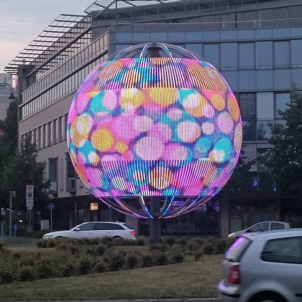 Ein Medienobjekt der besonderen Art - dreidimensionale LED-Wand, Werbefläche, Kunstobjekt, öffentlicher Raum, Verkehrsknotenpunkt, Lichtquelle, ... Eine Liste die sich lange fortsetzen ließe.